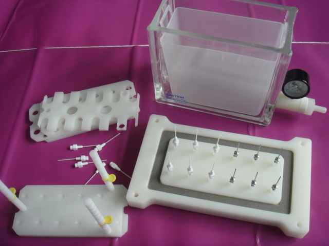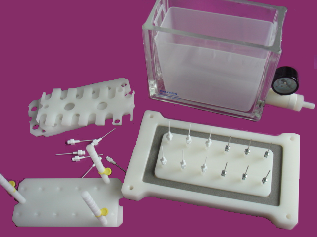 Mediwax固相萃取裝置可實(shí)現(xiàn)連續(xù)的樣品萃取和過濾,簡化復(fù)雜的樣品預(yù)處理過程并節(jié)約時間。整套裝置含有一個透明玻璃槽和頂蓋,可通過抽真空控制樣品流過SPE小柱實(shí)現(xiàn)萃取程序。通過調(diào)整玻璃槽里面的支架可容納不同規(guī)格的樣品收集管,包括玻璃或塑料試管、自動樣品瓶、容量瓶以及錐形瓶等,洗脫液通過選擇聚丙烯(PP)或不銹鋼導(dǎo)向針以及防交叉污染的特氟?。?/span>Teflon)連接管直接引入樣品收集管。12位裝置附贈一個聚丙烯(PP)廢液槽,用于操作中收集廢液,可簡化樣品處理過程中廢液的處理以及保持玻璃槽內(nèi)潔凈的環(huán)境。