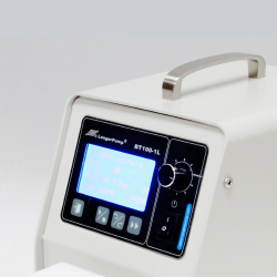 BT100-1L驅(qū)動器能輸出較大扭矩,能提供0.002-500(ml/min)的流量范圍。采用大屏幕點陣液晶顯示運行菜單及參數(shù)設(shè)置菜單,流量與轉(zhuǎn)速同屏顯示簡潔直觀,人機界面友好。具有流量校正功能,當(dāng)流量發(fā)生偏差時可通過此功能進行校正,從而滿足用戶對流量精度的要求。該多通道蠕動泵具有多種控制方式,可以通過標(biāo)準(zhǔn)外控接口以及RS485通訊接口對蠕動泵進行外部控制。