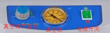 面板介紹(如圖2所示),機器面板依次為真空調(diào)節(jié)旋鈕,真空表和電源開關(guān),電源開關(guān)是手動控制電源的開關(guān),真空調(diào)節(jié)旋鈕可以調(diào)節(jié)真空吸力的大小,指針式真空表直觀顯示真空度。